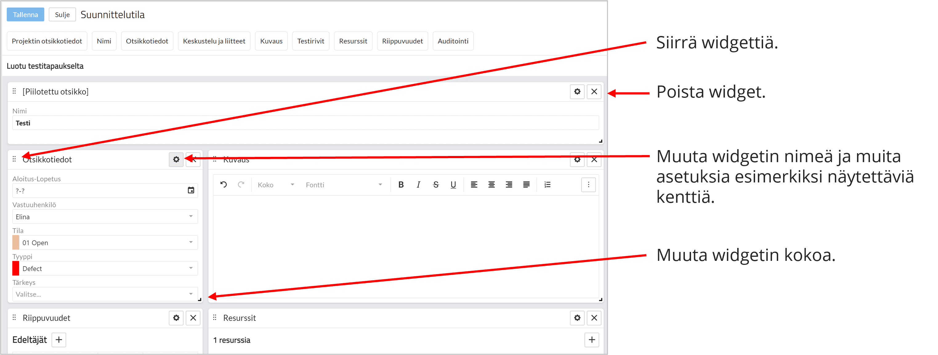 Tuo uusia widgettejä raahaamalla.