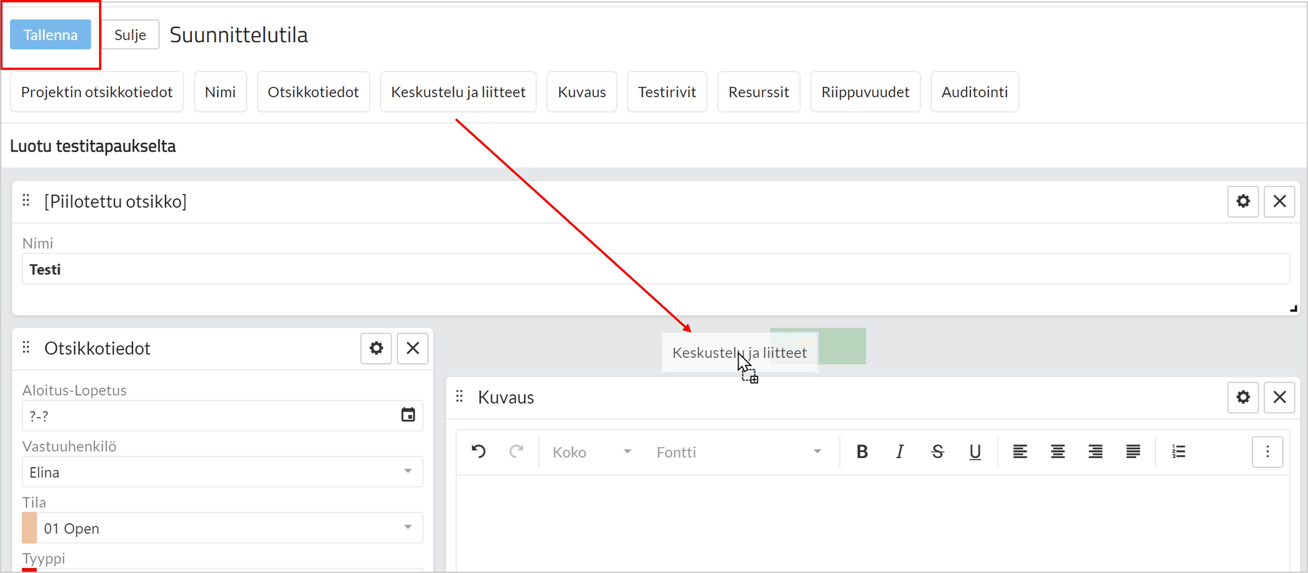 Voit tehdä muutokset projektin suunnitelmalla, Kanbanissa, Omat työt tai Aktiviteetit näkymässä. Valitse ensin sen tyyppinen aktiviteetti, jota haluat muokata.