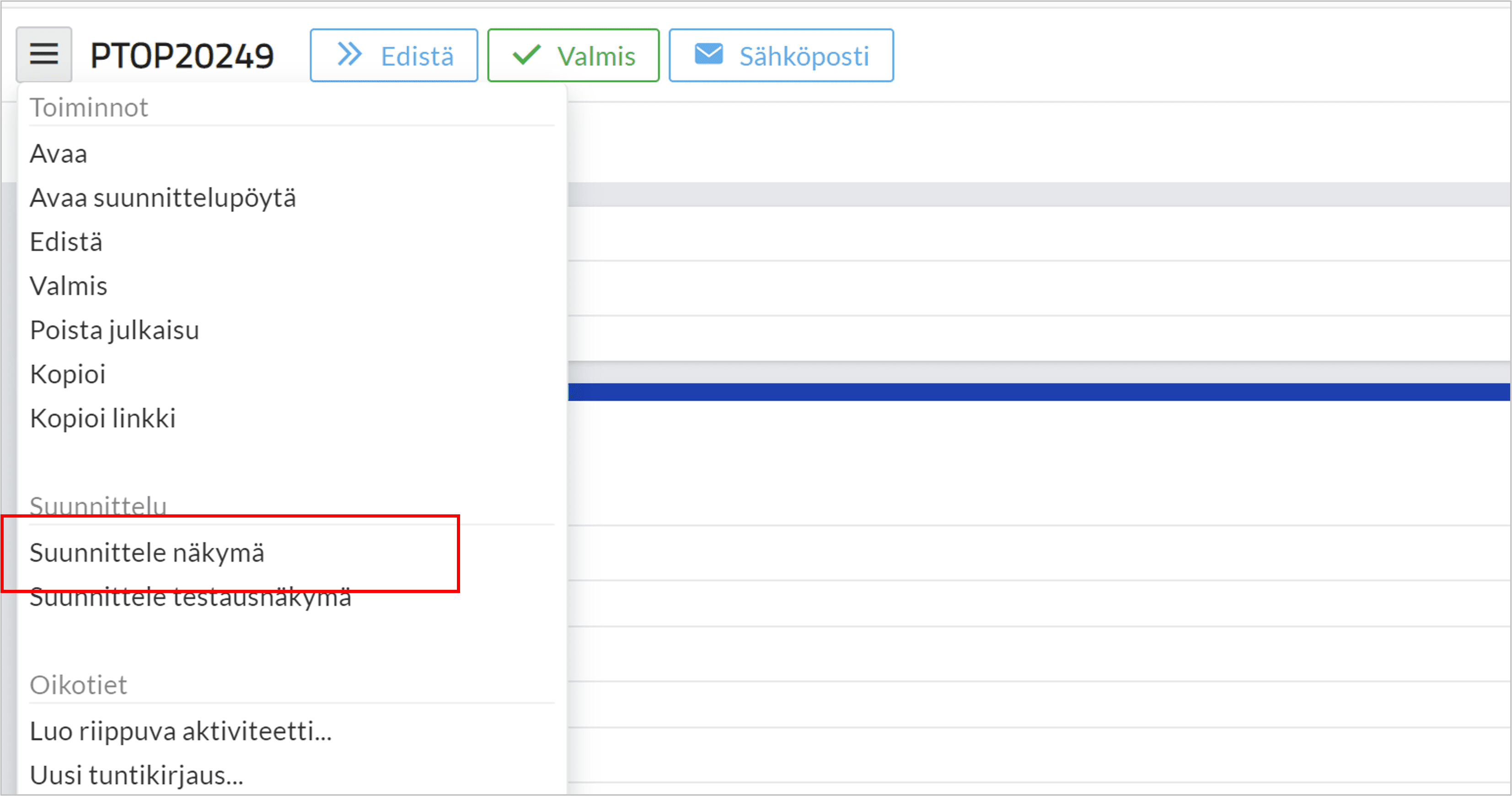 Klikkaa valikkopainiketta ja valitse ”Suunnittele näkymä”.