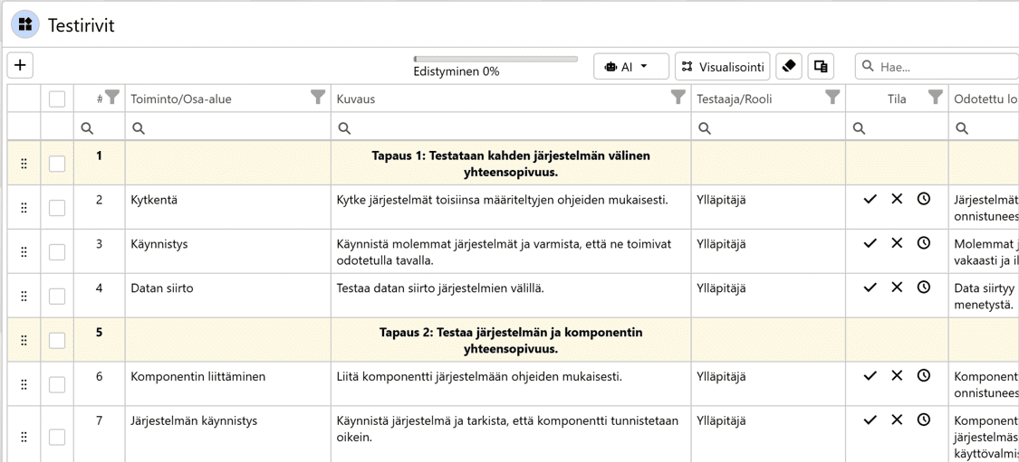 Testiriveillä näkyvät nyt tekoälyn avustuksella muodostetut testirivit.