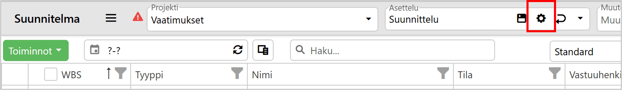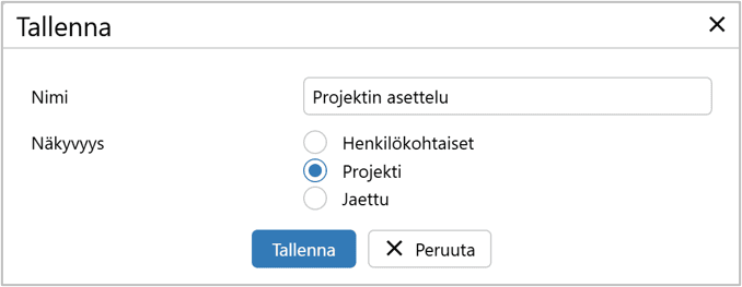 Projekti – Asettelu näkyy vain ko. projektin asetteluvalikossa.