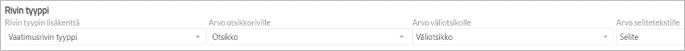Rivin tyyppi-kohdassa valitse ensin kenttä, josta tiedot luetaan Exceliin otsikoksi, väliotsikoksi ja selitteeksi. Mäppää kentän arvot.