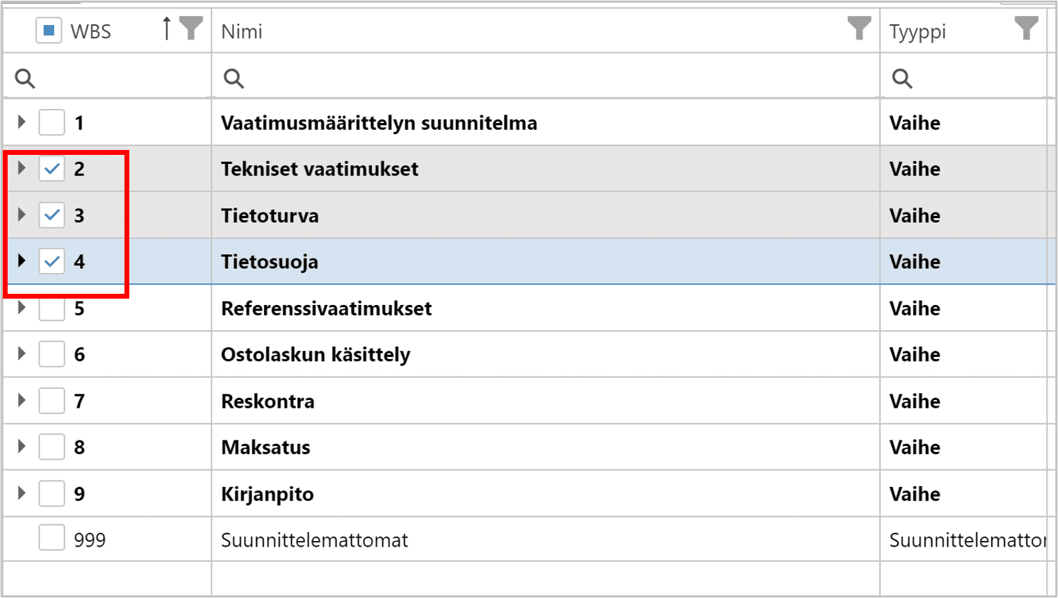 Huom! Tarkista, että Exceliin haluamasi aktiviteettirivit ovat keskenään samassa tilassa.