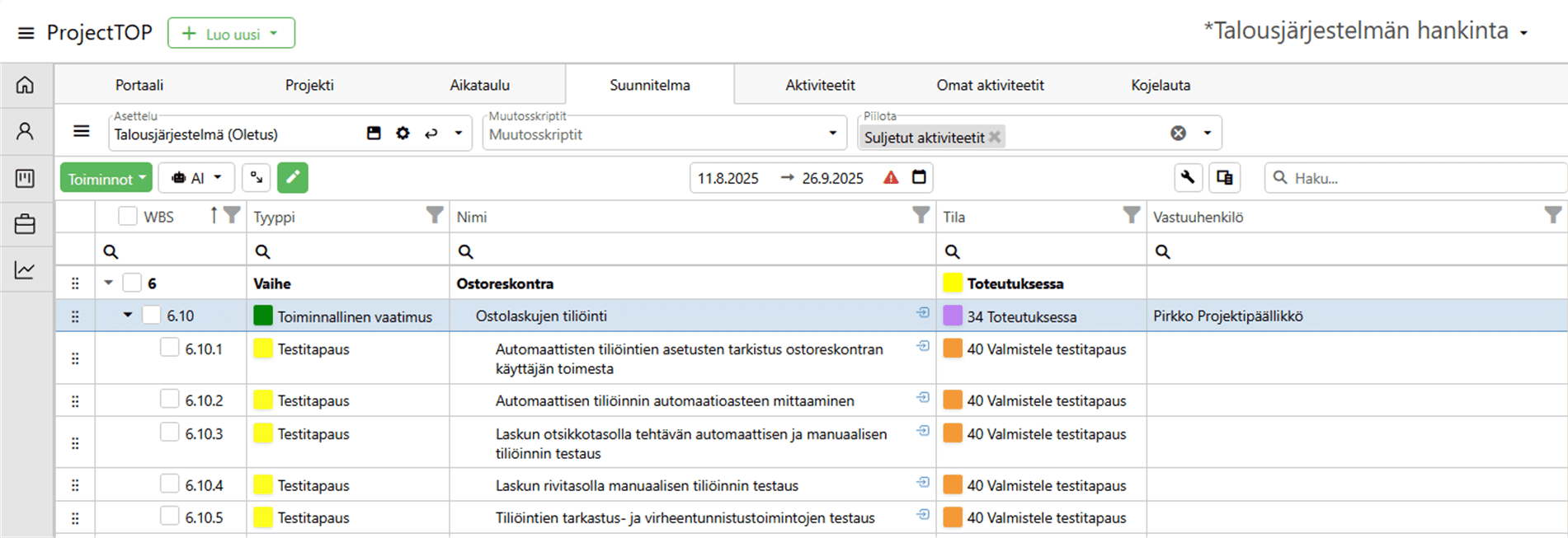 Testitapausten otsikoiden luominen ProjectTOP AI:n avulla